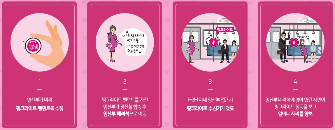Las autoridades de Busan, en Corea del Sur, han puesto en marcha un proyecto piloto que permite a las mujeres embarazadas encontrar un asiento en el transporte público gracias a un punto de luz rosa que se ha instalado en determinados asientos.