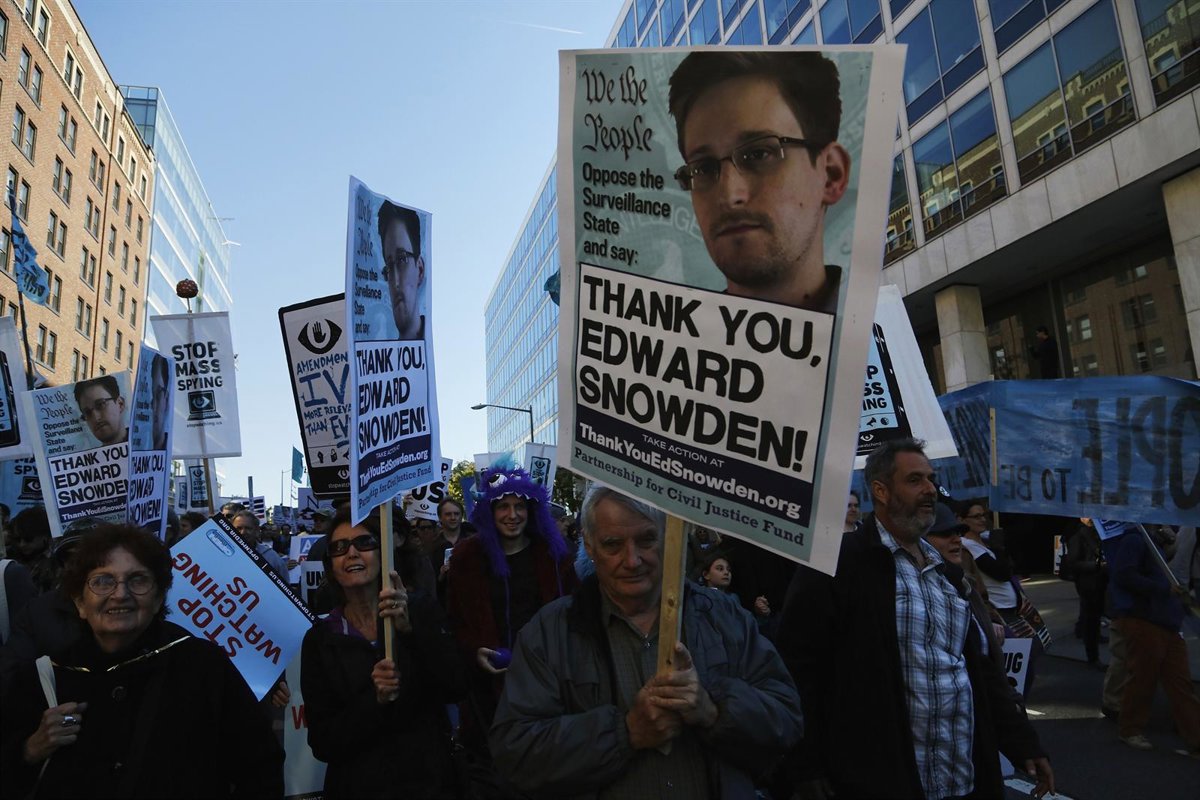 Cientos de manifestantes se han manifestado este sábado en Washington para protestar contra los programas de vigilancia de las agencias de espionaje estadounidenses revelados por el extrabajador de la Agencia Nacional de Seguridad (NSA) Edward Snowden.