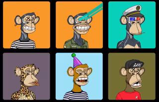Seis primeras figuras de las 10.000 que componen la colección de NFT Bored Ape Yacht Club. - BORED APE YACHT CLUB