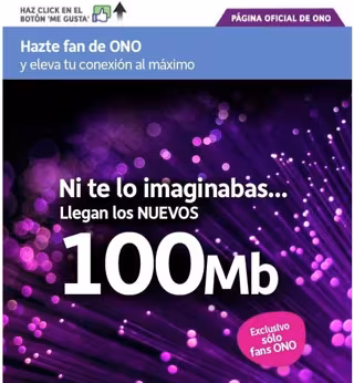 ONO ha anunciado el inicio de la comercializacion de su oferta de 100 megas reales de bajada en Internet y 10 de subida, para aquellos usuarios que estén interesados en utilizar esta nueva velocidad excepcional y única de navegación en Internet. Los seguidores de ONO en Facebook serán los primeros en acceder a la compra en esta primera fase de comercializacion.
