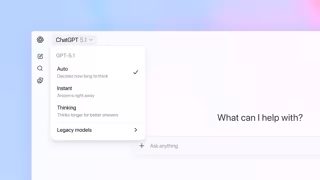 Siguiendo esta línea, el modelo también ofrece el modo GPT-5.1 Auto, que analiza cada consulta de los usuarios y escoge el modelo más adecuado para llevarla a cabo, ya sea Instant o Thinking. De este modo, en la mayoría de los casos, los usuarios no tendrán que escoger entre los distintos modelos, sino que se utilizará uno u otro automáticamente para ofrecer los resultados más óptimos.