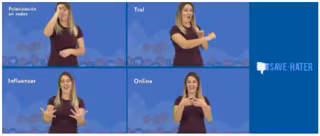 Una decena de vídeos breves, que pueden verse en la web de la campaña 'Save a Hater', muestran los signos creados específicamente para nuevos conceptos del ámbito digital. 'Bot', 'trol', 'influencer', polarización o 'fake' son algunos de estos nuevos signos, que servirán para abordar cuestiones tan importantes para las personas sordas como la desinformación y los engaños en las redes sociales.