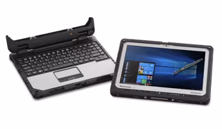 Diseñado para trabajadores en movimiento, este último 2-en-1 cuenta con una correa de transporte que también se puede utilizar para sujetar el dispositivo con una sola mano. Además, se puede agregar una correa de mano opcional de 360 grados para facilitar el trabajo con el Tablet en posición vertical u horizontal, así como una base de escritorio opcional y elegante con bloqueo Kensington para ofrecer más seguridad y que también permite que el dispositivo se utilice fácilmente en modo escritorio.