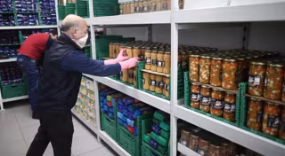 Un voluntario de la fundación FAYEC protegido con mascarilla coloca productos en el Banco de Alimentos de Madrid. - Eduardo Parra - Europa Press - Archivo