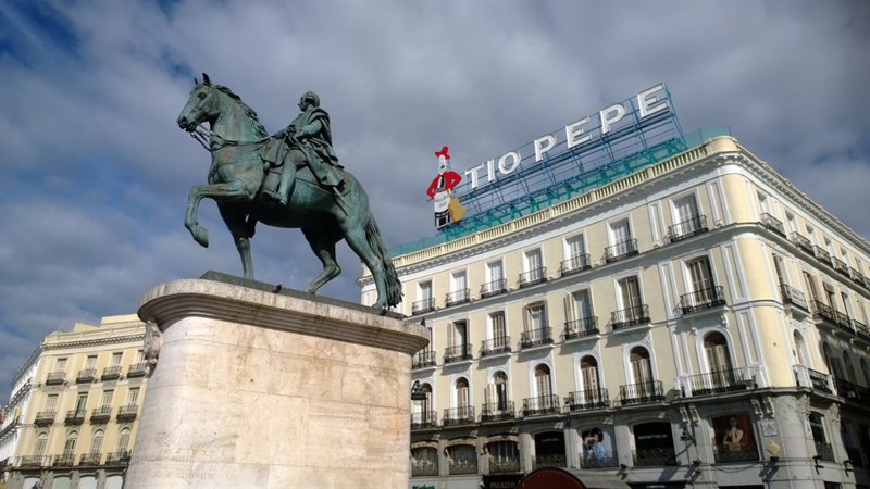De esta forma, el cartel del Tío Pepe ha sido realojado en el número 11 de la Puerta del Sol, en la esquina de Preciados y frente a la Real Casa de Correos.