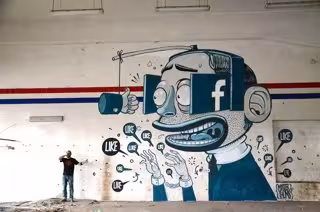 Artista urbano ve como borricos a los obsesionados con Facebook