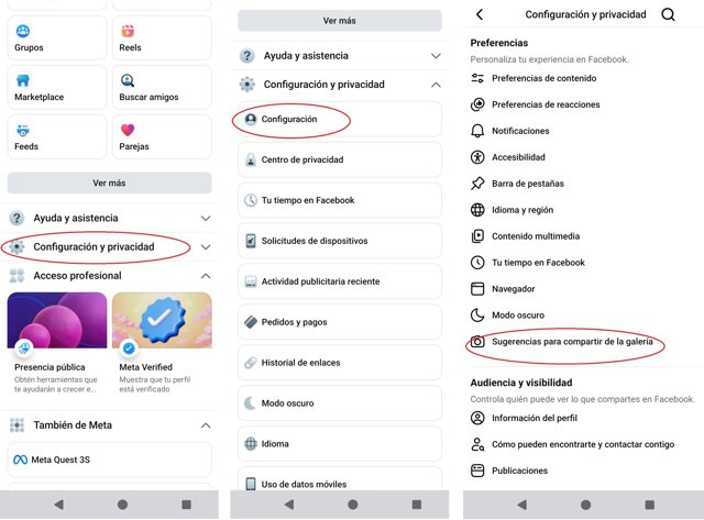 Por su parte, respecto a la segunda opción, no se permitirá a Facebook que muestre fotos y vídeos de la galería que no se han compartido como sugerencias para publicar contenido.