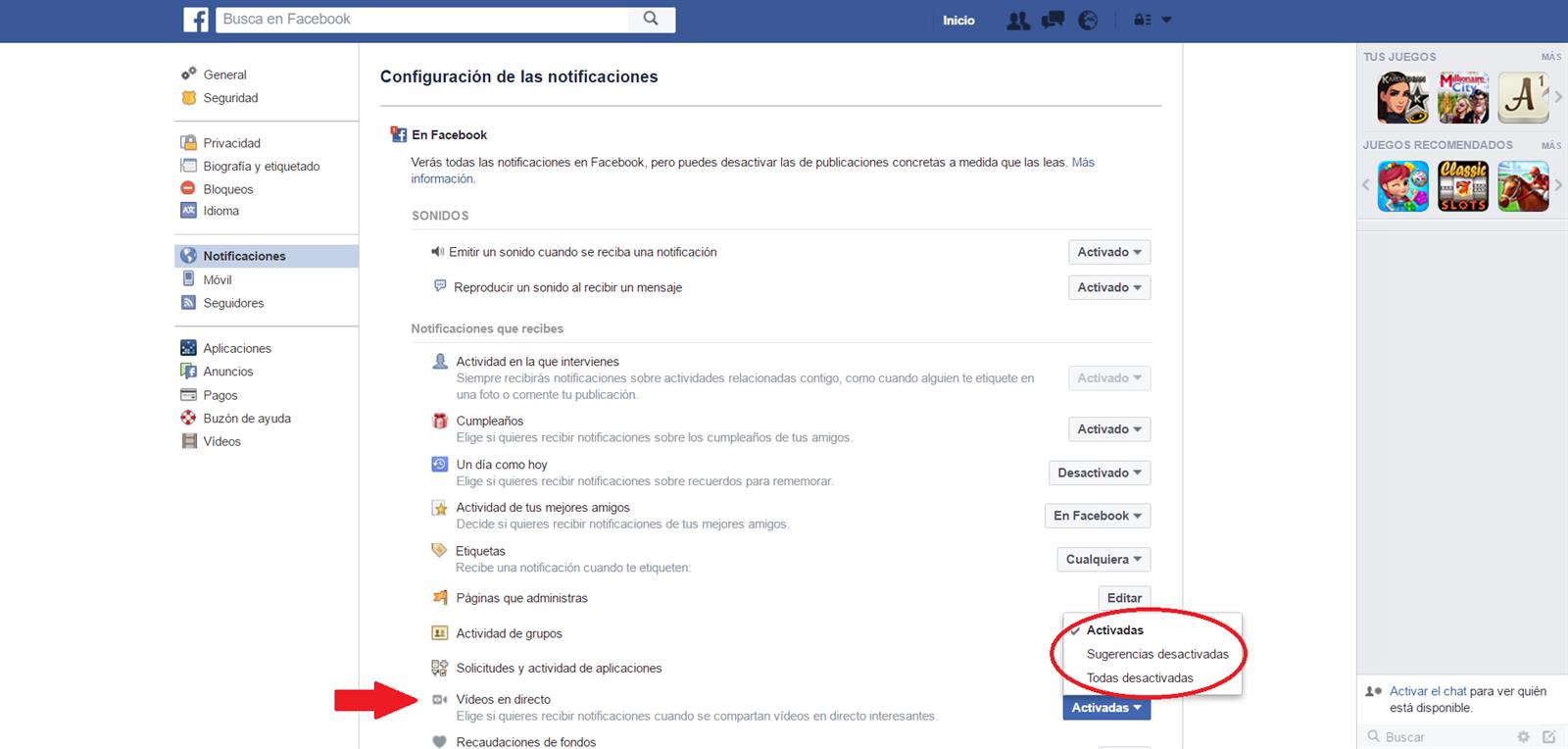 Si estás harto de recibir constantemente los avisos, lo mejor será que desactives las notificaciones de Facebook Live al completo; si las de tus amigos te interesan, la opción de “sugerencias desactivadas” puede librarte de algún que otro aviso. La decisión es tuya.
