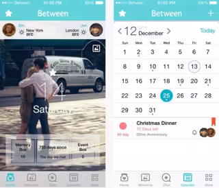 La actualización de Between incluye nuevas características como mayor visibilidad de las fotos, un calendario compartido para que las parejas apunten fechas especiales, aniversarios o cumpleaños con notificaciones de las citas. Esta versión 2.0 cuenta también con una función de previsiones del tiempo, algo útil según la compañía para las relaciones a distancia.