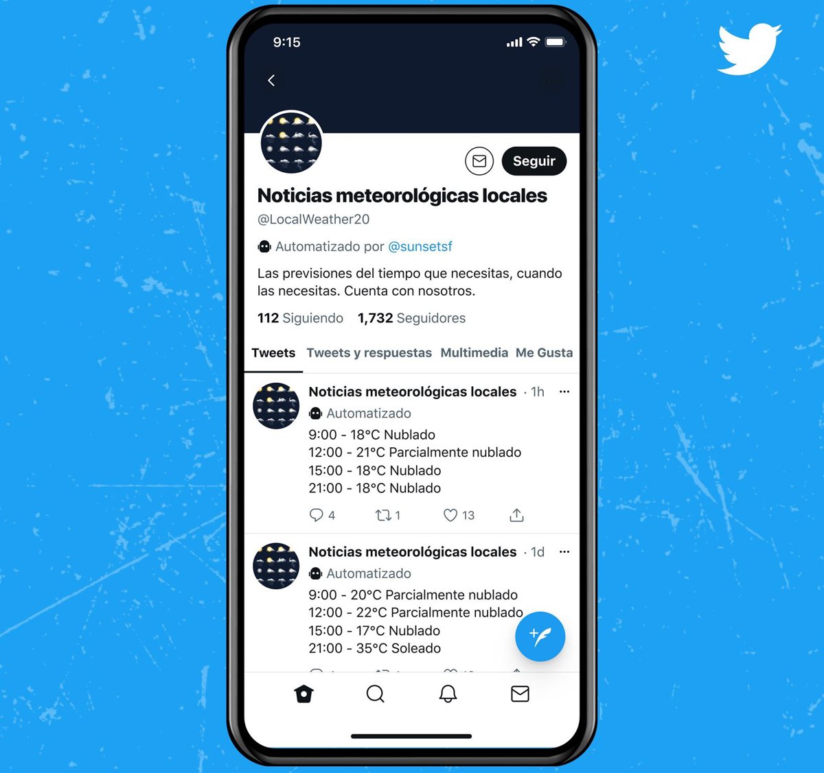 Opcional y con la imagen de un robot, la etiqueta se dirige a los considerados como 'bots buenos, es decir, aquellas cuentas automatizadas que comparten información útil o relevante y tienen la intención de mejorar genuinamente la experiencia de Twitter. Un ejemplo es @BotAemet, de la Agencia Estatal de Meteorología, que informa del tiempo hará en el municipio del usuario el día siguiente.