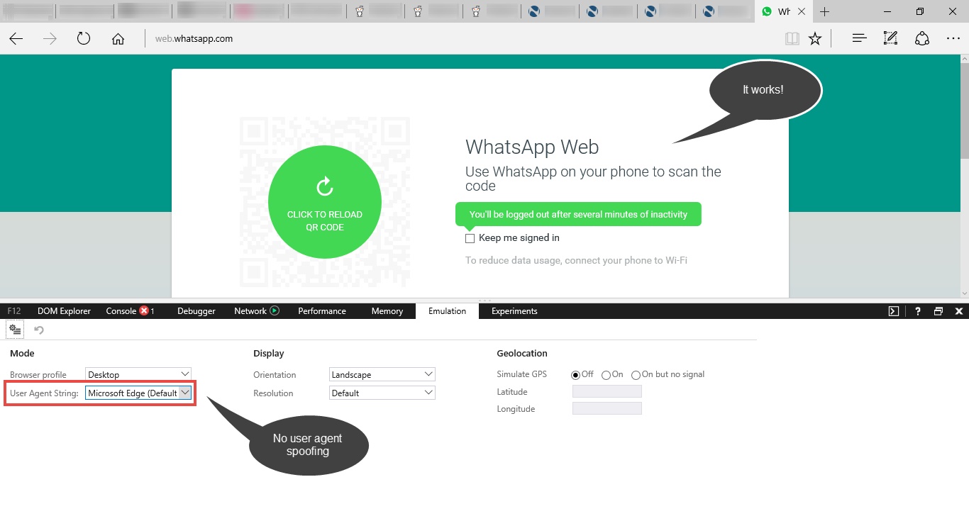 WhatsApp Web todavía no está disponible para Microsof edge, pero esto no ha impedido que algunos usuarios lograran usar la aplicación web de servicio de mensajería en el nuevo navegador.