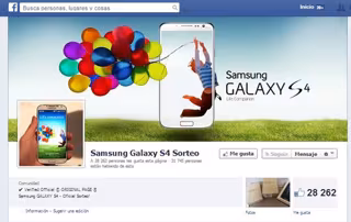 Este es el caso de la página 'Samsung Galaxy S4 Sorteo'. Se creó hace poco más de un mes, el 4 de abril de 2014, como la página de un sorteo oficial de Samsung de 211 terminales Galaxy S4 que habían sido abiertos en tienda y que por ese motivo no se podían vender en canal oficial.