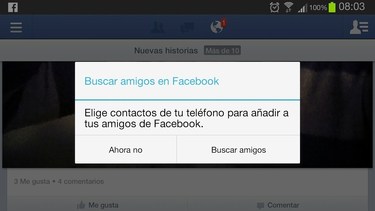 Facebook ha comenzado a poner en práctica una nueva y molesta campaña para que el usuario rastree su agenda en el móvil para encontrar amigos nuevos que agregar a sus contactos en la red social. Se trata de una recurrente ventana que aparece cuando los usuarios inician la aplicación y que no se puede rechazar, sino posponer. Aceptar esta función implica que los contactos de la agenda en el móvil queden guardados en los servidores de la red social.