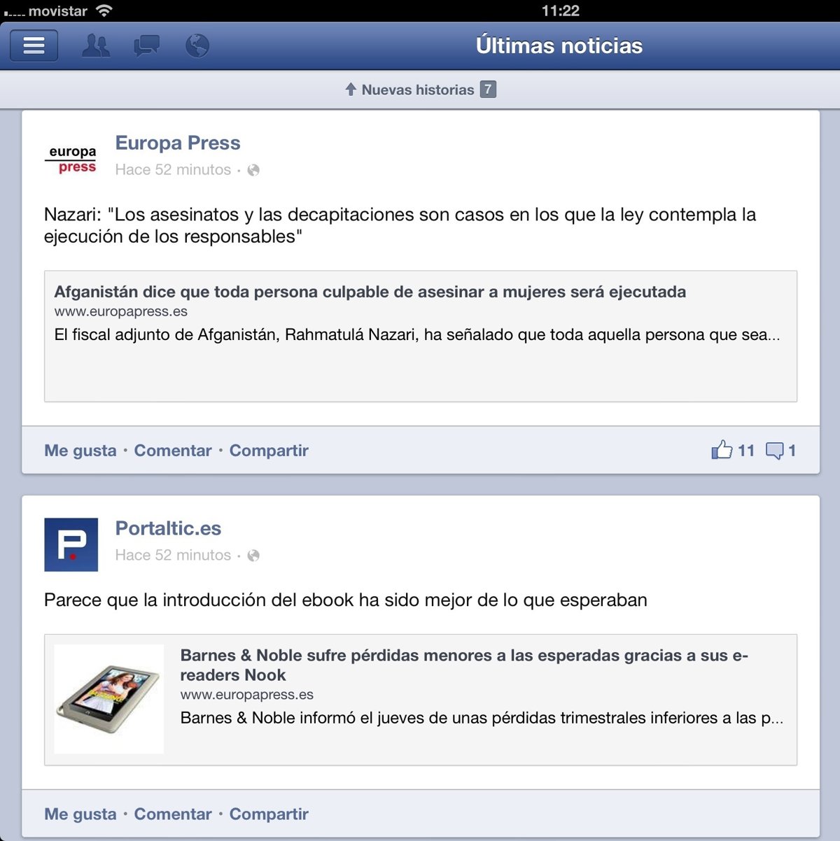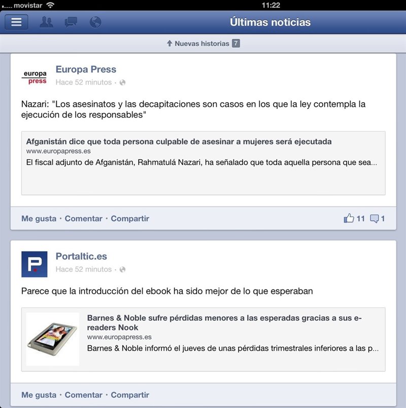 La opción ha sido muy bien recibida, pero no ha estado exenta de problemas. En la descripción de la actualización, en la App Store, la primera novedad que aparece es "la posibilidad de compartir las mejores historias de tu sección de noticias con un solo toque". En dispositivos Android y en el 'tablet' iPad, efectivamente es así. Por alguna extraña razón, en iPhone el botón Compartir brilla por su ausencia.