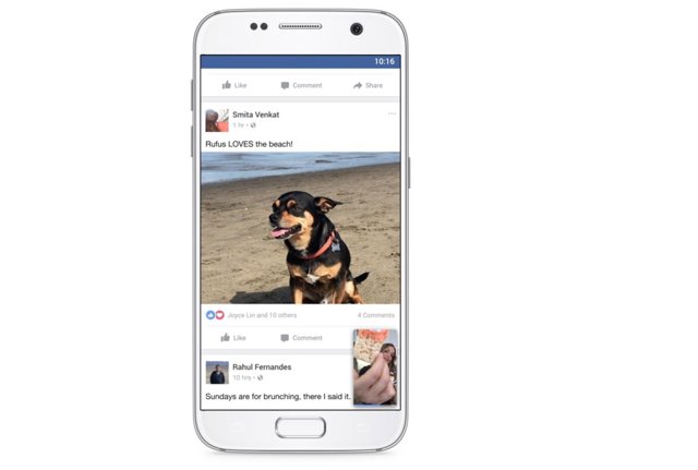 Los vídeos no desaparecerán al hacer 'scroll'. Desde ahora será posible verlos en una pantalla minimizada mientras continuamos repasando las novedades del News Feed. Esta pequeña pantalla aparecerá en una esquina, pero, al menos en los dispositivos Android, si se mueve a otra esquina, y salimos de la 'app' de Facebook, el vídeo seguirá reproduciéndose.