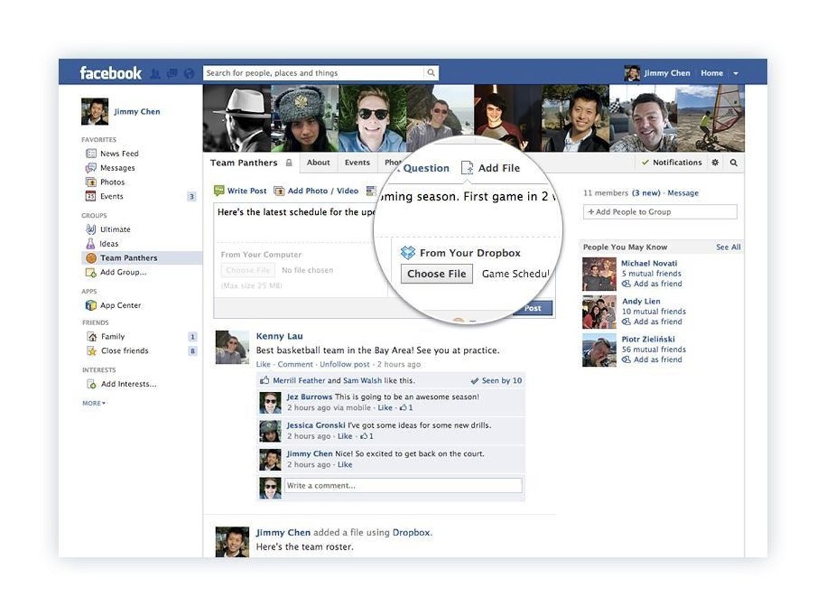 Los integrantes de grupos de Facebook están de enhorabuena porque próximamente podrán compartir archivos a través de Dropbox sin necesidad de salir de la red social. De este modo, todas y cada una de las modificaciones que se hagan en los archivos del servicio de almacenamiento serán vistas -y editadas si lo desean- por los componentes que forman el Grupo.