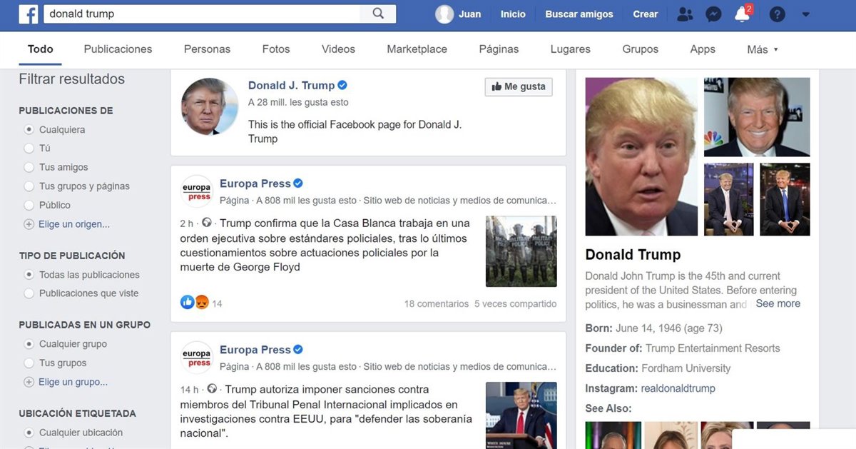 Captura de los paneles de información de búsqueda en Facebook. - FACEBOOK OFICIAL