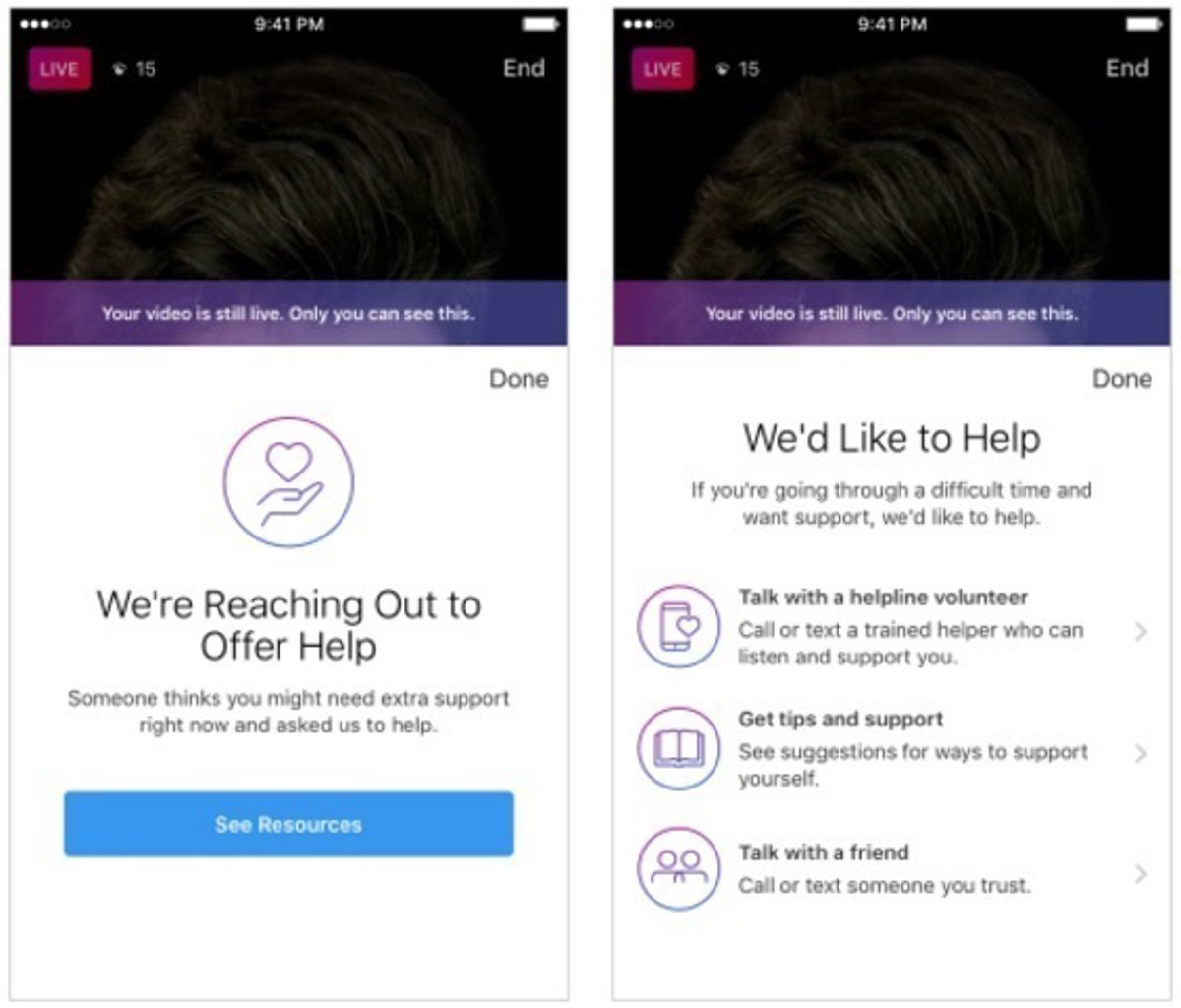 Instagram también ha introducido la posibilidad de reportar de forma anónima vídeos en Directo, con el fin de detectar a aquellos usuarios que están pasando por un mal momento y pueden necesitar ayuda, como ha informado en un comunicado.