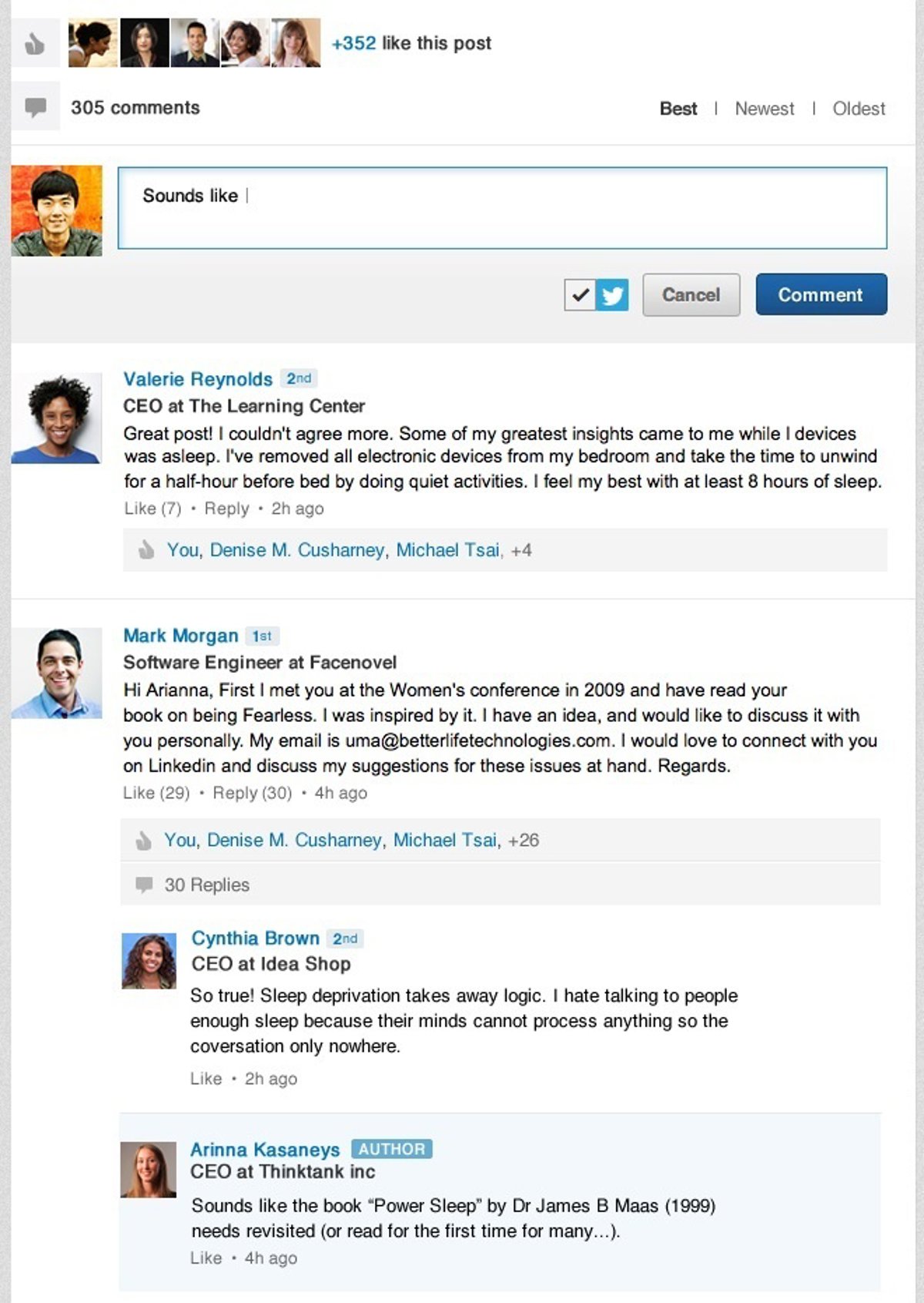 Al igual que ya sucede con las actualizaciones de los estados de LinkedIn comunes, los usuarios pueden comentar las publicaciones individuales del líder de opinión en cuestión y responder directamente a los mensajes dejados por otros. De esta forma, se podrá establecer un debate sobre temas de actualidad de interés popular.