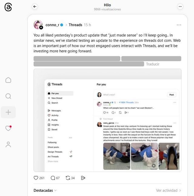 "La web es una parte importante de la forma en que nuestros usuarios más activos interactúan con Threads, y vamos a invertir más en este ámbito de cara al futuro", ha señalado el director de Threads, Connor Hayes, en una publicación compartida en la propia plataforma.
