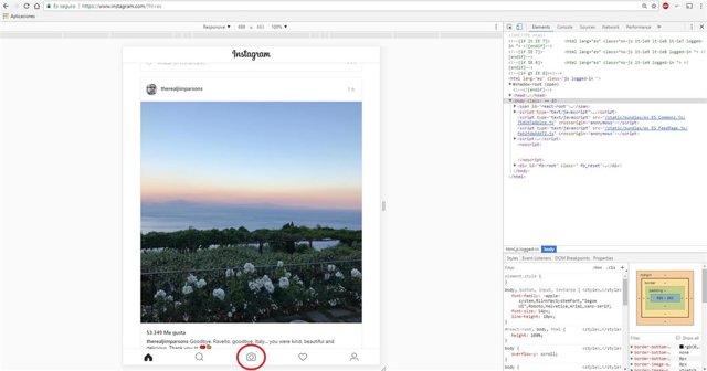 Hecho esto, solo tienes que ir a la web de Instagram (sin cerrar el panel de desarrollo) y pulsar en el icono de la cámara para seleccionar qué foto quieres subir. Cuando termines, en Chromebastará con pulsar F12 para cerrar el panel y que todo vuelva a la normalidad; en Mozilla tendrás que pulsar F12 y cerrar la pequeña pestaña de 'Vista de diseño adaptable' que se muestra en la parte superior de la ventana.