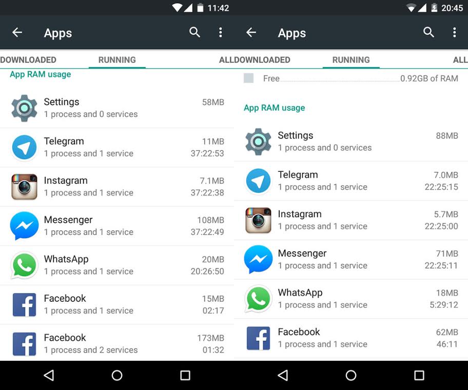 Dicen por ahí que RAM no utilizada, RAM malgastada, dado que su correcto uso por parte de aplicaciones hace que el rendimiento general de la misma aumente enormemente. El verdadero problema está en la gama media-baja, donde debemos ser muy cuidadosos a la hora de administrar un solo Gigabyte de RAM. No hace falta ninguna herramienta externa para realizar esta medición, ya que desde Ajustes > Aplicaciones > En ejecución podemos realizar las averiguaciones que necesitamos.