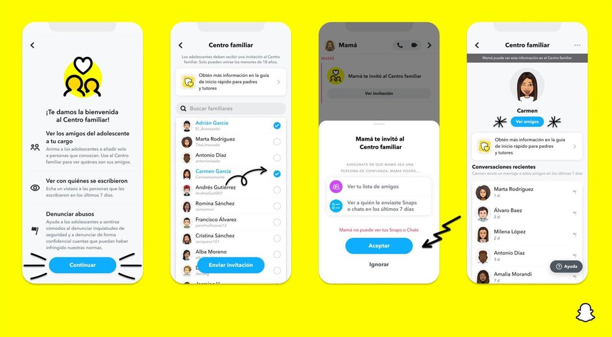 Snap ha anunciado el lanzamiento en España de la herramienta de control parental 'Centro familiar' de Snapchat, una función que permite a padres y tutores controlar la seguridad y supervisar la actividad de sus hijos en la aplicación.