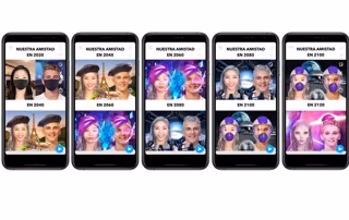 De esta manera, los usuarios pueden compartir imágenes de ellos y un amigo en ubicaciones extravagantes y a través de diferentes edades.