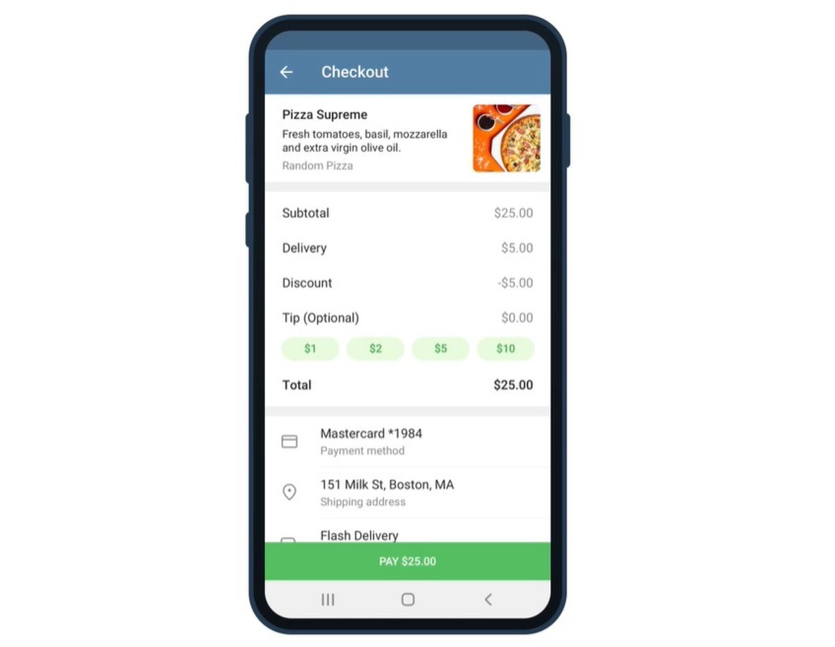 Para los pagos, Telegram ha integrado los servicios de ocho proveedores externos, como Stripe o Payme. Existe, además, la opción de que los compradores añadan una propina. Están disponibles tanto en la versión móvil como web.