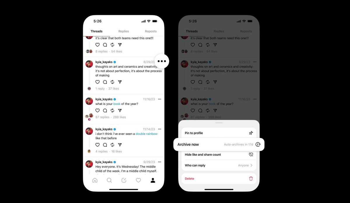 Meta ha comenzado a probar la función de archivado de publicaciones en Threads, de manera que los usuarios puedan ocultar de la vista su contenido, ya sea de forma automática, después de un periodo de tiempo tras su publicación, o de forma manual con contenido seleccionado y en el momento deseado.