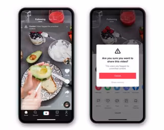 La advertencia, como explican desde TikTok en un comunicado en su blog, también llegará al creador del vídeo. Y una nueva ventana se mostrará ante el usuario si intenta compartirlo, aunque en esta ocasión se le dará la opción de proseguir con su intento.