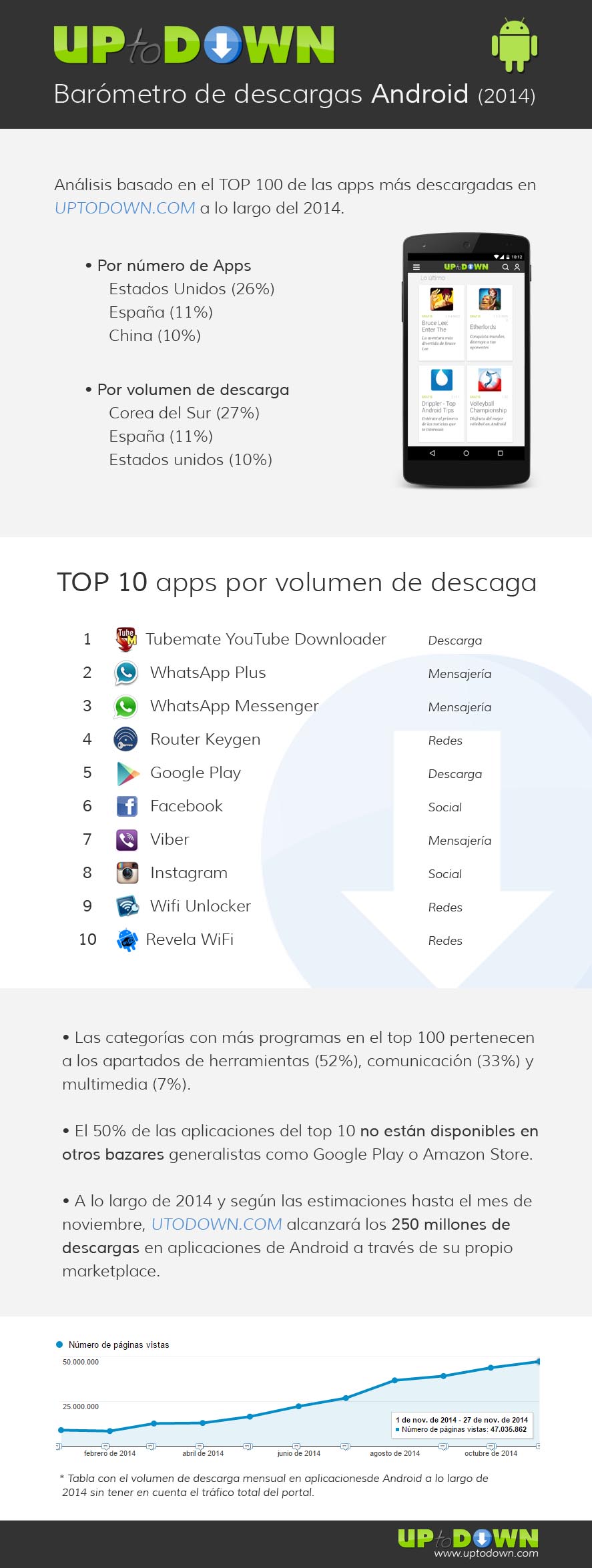 TubeMate YouTube Downloader y Whatsapp Plus han sido las apps más descargadas para Android según el "Barómetro semestral de descarga de apps para Android" de Uptodown.com. Este estudio ha analizado las más de 100 millones de descargas realizadas por usuarios de todo el mundo en doce idiomas (español, inglés, francés, alemán, portugués, italiano, chino, ruso, japonés, coreano, indonesio y árabe).