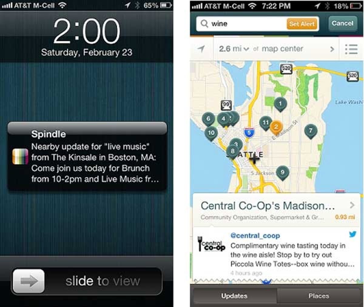 Twitter es una fuente de información para obtener las últimas noticias alrededor del mundo de una manera casi inmediata, y Spindle podría ser usada de igual manera para acontecimientos locales. Hasta ahora se integraba con Facebook y Twitter para mostrar información local, como promociones en restaurantes y descuentos en tiendas.