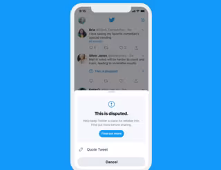Cuando los usuarios intenten 'retuitear' o citar un 'tuit' etiquetado por la plataforma como contenido que viola sus políticas sobre desinformación, aparecerá un mensaje, una notificación que indica que se trata de contenido controvertido.