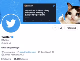 Perfil de Twitter con insignia azul y etiqueta de cuenta oficial - TWITTER OFICIAL