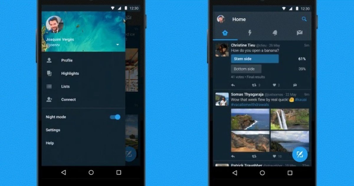 Twitter se adapta a los noctámbulos. La red social de los 140 caracteres se adapta a las calurosas noches de verano y los insomnios, lanzando un tono más oscuro para visión nocturna en Android, que hace más sencillo utilizar la aplicación de noche y sin dañar los ojos.