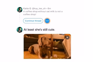 De esta forma, y con el nuevo 'tuit' ya preparado, el usuario solo tiene que arrastrar esta nueva publicación hacia abajo para ver aparecer las nuevas opciones: el botón de 'Continuar hilo', o si el 'tuit' es más antiguo, el del menú con los tres puntos, que le permitirá buscar 'tuits' anteriores.