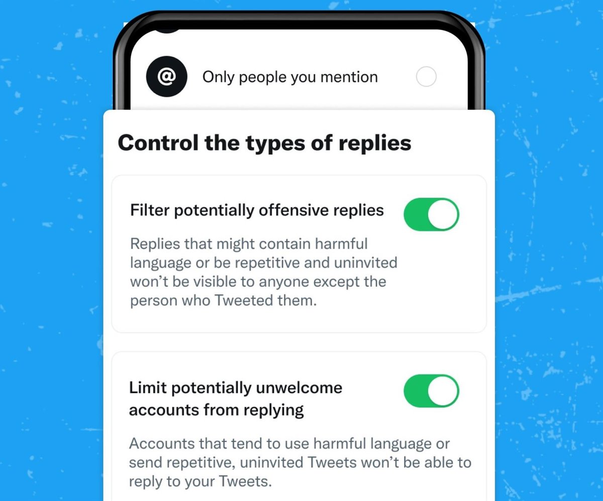 Twitter ha dado a conocer dos nuevas funciones en las que se encuentra trabajando, con las que permite filtrar automáticamente las respuestas potencialmente ofensivas a tuits e incluso limitar que quienes infringen las normas puedan contestar.