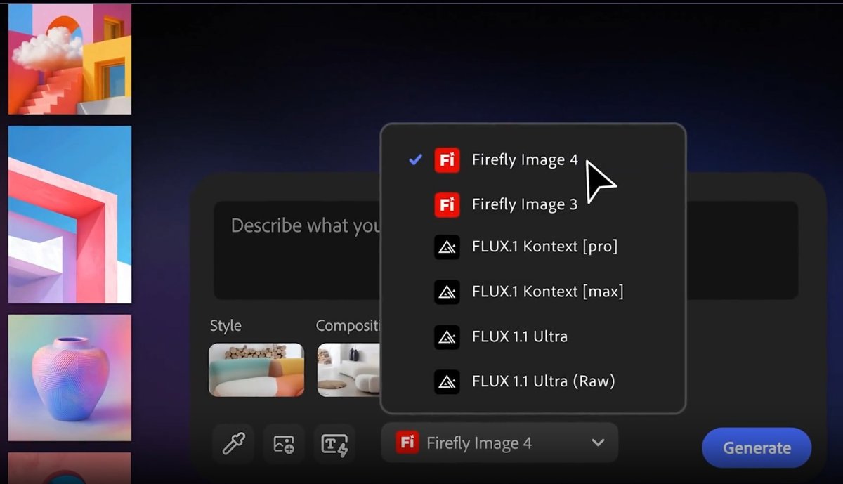 Este catálogo de modelos incluye el nuevo Firefly Image Model 5, de desarrollo propio y dirigido la generación y edición de imágenes, que ya está disponible en una modalidad de beta pública. Con él, es posible generar imágenes con una resolución nativa de 4MP sin necesidad de escalado.