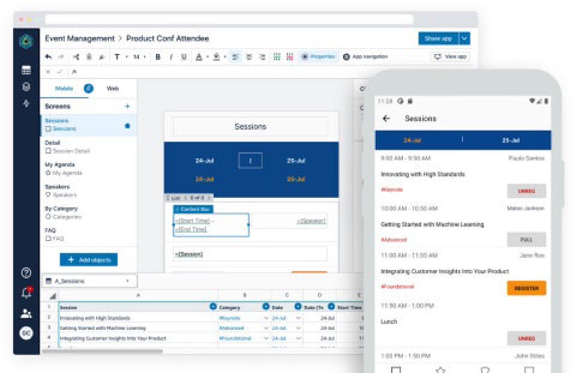 Las aplicaciones desarrolladas mediante este servicio de AWS incluyen diferentes variedades de interfaces entre las que se incluyen listas, botones y campos para rellenar, así como notificaciones, suscripciones por email, encuestas, listas de tareas, etc.