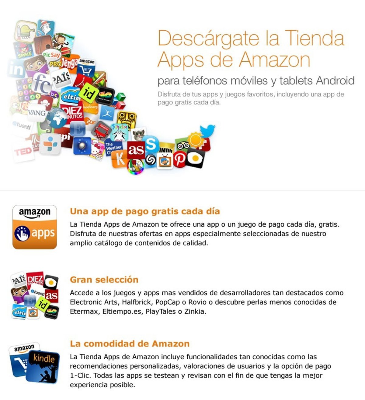 Además, Amazon ha querido premiar a sus usuarios de los 'tablets' regalando una aplicación, que es habitualmente de pago, cada semana. Asimismo, ofrece una app en exclusiva para Android al mes, también de forma gratuita.