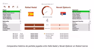 Estadísticamente, el de Manacor tiene más posibilidades de ganar, ya que se ha impuesto en los cuatro partidos en los que se ha enfrentado al serbio en Roland Garros y ha ganado 11 sets, mientras que su rival solo se ha impuesto en uno.