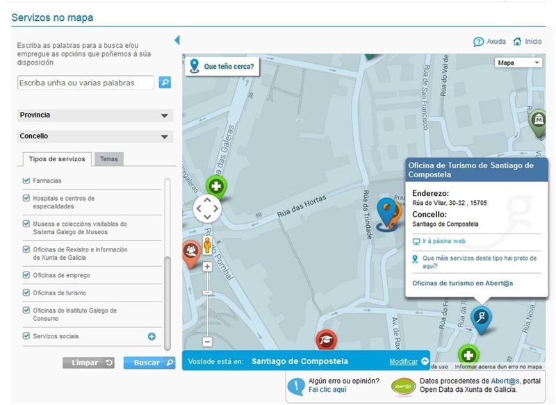 La aplicación de la web de la Xunta 'Servizos no mapa' dispone ya de más de 6.300 equipamientos y servicios de la Administración pública tanto autonómica como estatal y local.