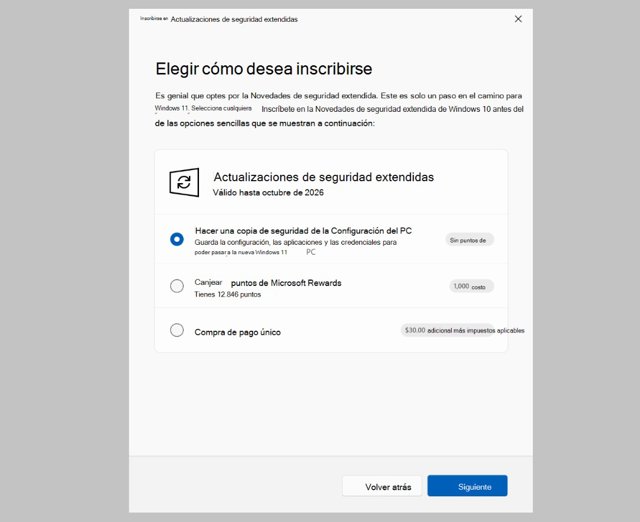 Cabe tener en cuenta que ESU requiere un pago por parte de los usuarios, que en el caso de los consumidores es de 30 dólares o de mil puntos de Microsoft Rewards, y la inscripción debe realizarse antes de que el ESU finalice el 13 de octubre de 2026.