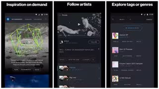 Los usuarios pueden navegar por la 'app' y descubrir contenido por categorías, guardar para ver o escuchar más tarde, conectar con una cuenta de Facebook o Google para estar al día de las novedades de los artistas, escuchar en segundo plano, etc.