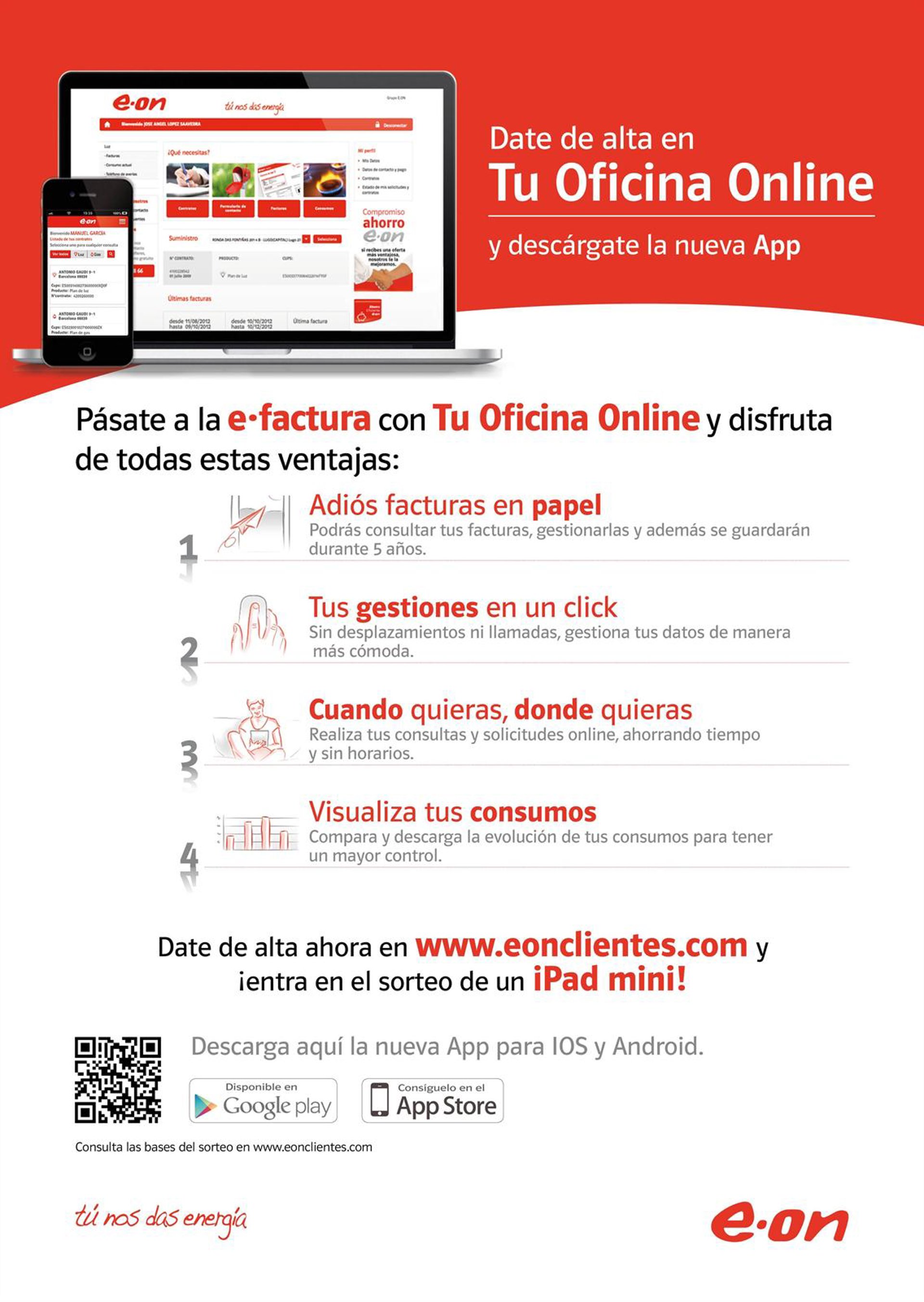 En una nota, E.ON explica que la app es válida para sistemas iOS y Android, y que entre todos los clientes que se den de alta en este servicio se sortearán 15 iPads mini hasta final de año.