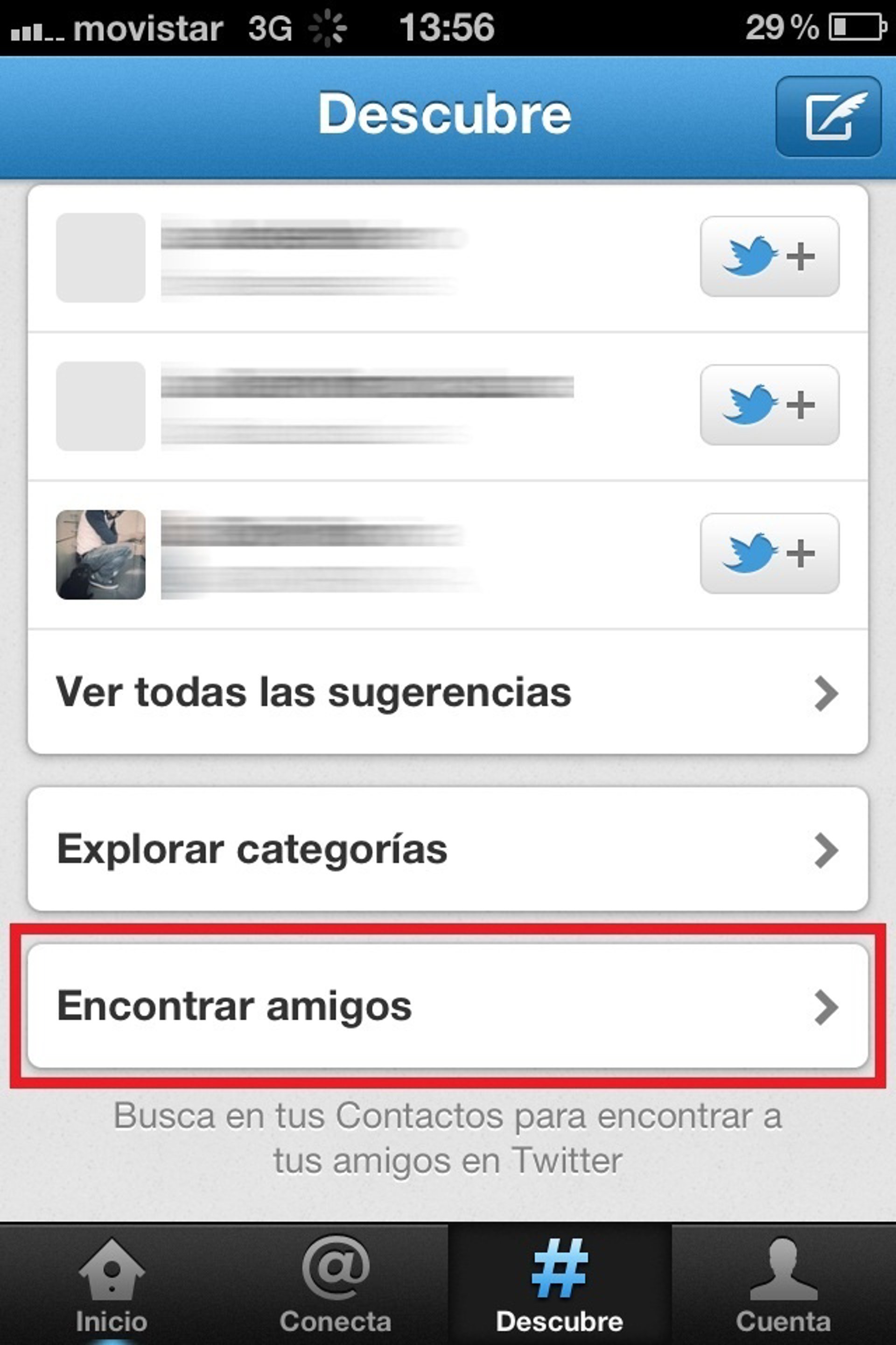 Al ejecutar la opción 'encontrar amigos' (situada en la parte inferior de la pestaña # de las aplicaciones) desde el dispositivo, la compañía reconoce en su política de privacidad que "es posible proporcionar información que servirá para adaptar mejor el servicio de Twitter al usuario, como facilitar el teléfono móvil para entregar mensajes SMS o la agenda de direcciones".