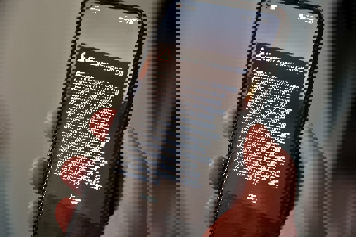 Archivo - Alerta de protección civil recibida en un móvil por el "112 inverso" con motivo del incendio de una nave de disolventes. A 14 de mayo de 2025 en Alcalá de Guadaira, Sevilla (Andalucía, España). - Rocío Ruz - Europa Press - Archivo