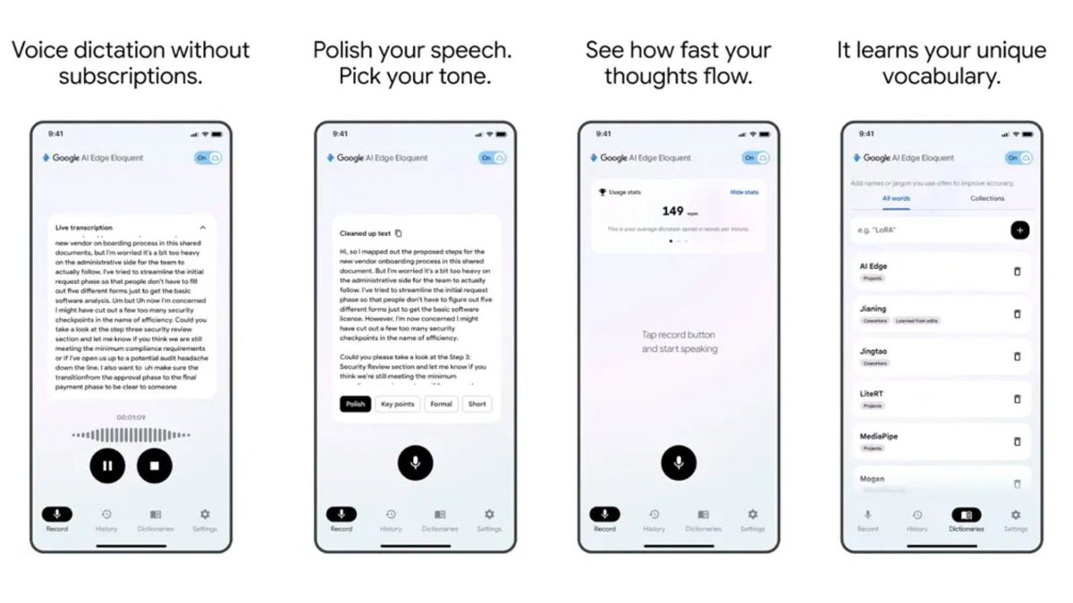 Google ha lanzado este lunes la aplicación 'Google AI Edge Eloquent', enfocada al dictado por voz impulsado por inteligencia artificial (IA) para transcripciones en tiempo real.