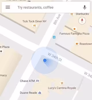 Google Maps incorpora una esfera y un foco azules a nuestra posición para orientarnos mejor